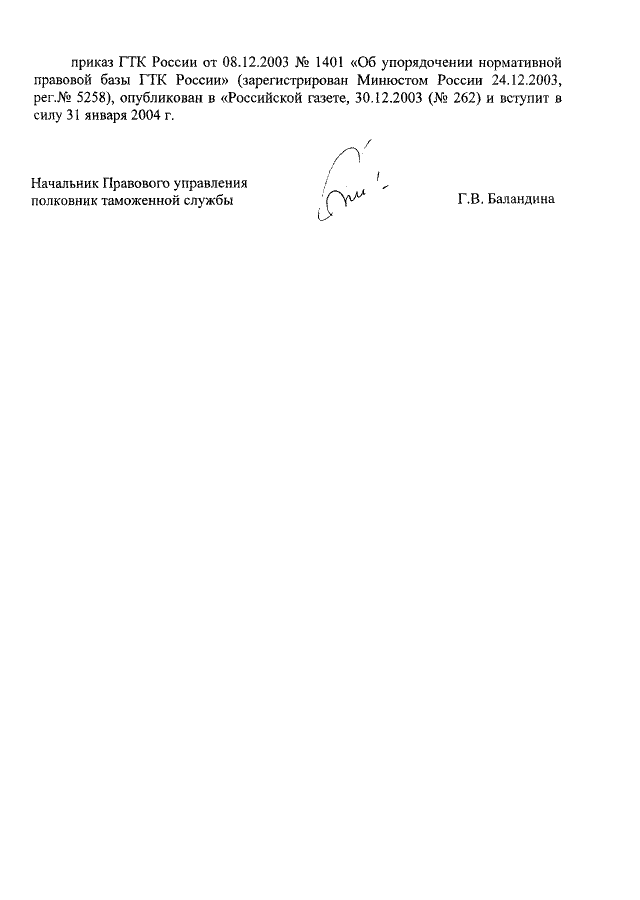 "О ВСТУПЛЕНИИ В СИЛУ НОРМАТИВНЫХ ПРАВОВЫХ АКТОВ ГТК РОССИИ"