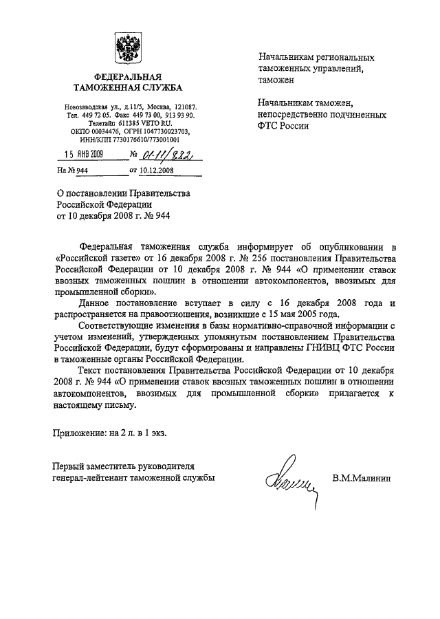 "О ПОСТАНОВЛЕНИИ ПРАВИТЕЛЬСТВА РОССИЙСКОЙ ФЕДЕРАЦИИ ОТ 10 ДЕКАБРЯ 2008 Г. N 944"
