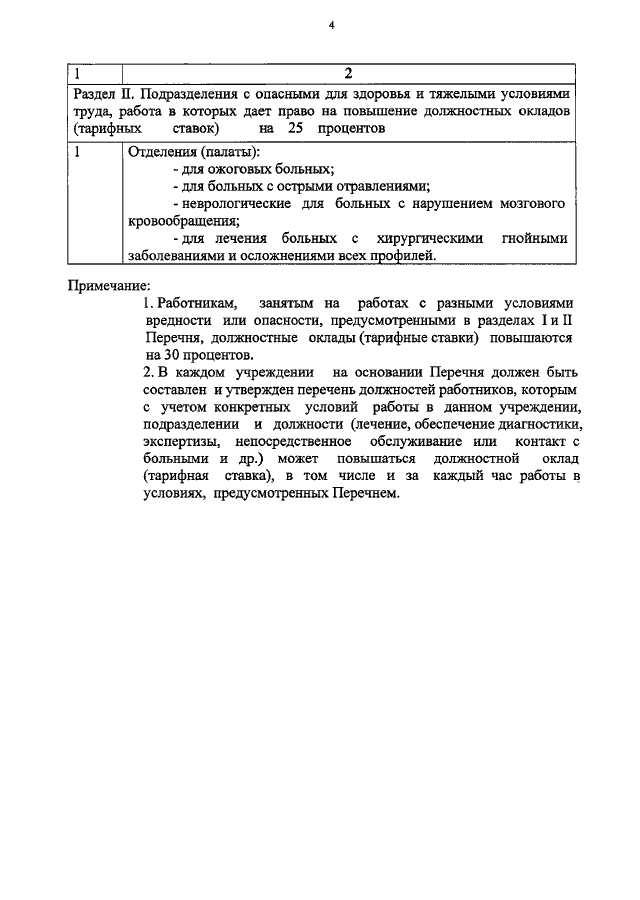 "ОБ УТВЕРЖДЕНИИ ПЕРЕЧНЯ ПОДРАЗДЕЛЕНИЙ И ДОЛЖНОСТЕЙ, РАБОТА В КОТОРЫХ ДАЕТ ПРАВО РАБОТНИКАМ НА ПОВЫШЕНИЕ ДОЛЖНОСТНЫХ ОКЛАДОВ (ТАРИФНЫХ СТАВОК) В СВЯЗИ С ОПАСНЫМИ ДЛЯ ЗДОРОВЬЯ И ТЯЖЕЛЫМИ УСЛОВИЯМИ ТРУДА"