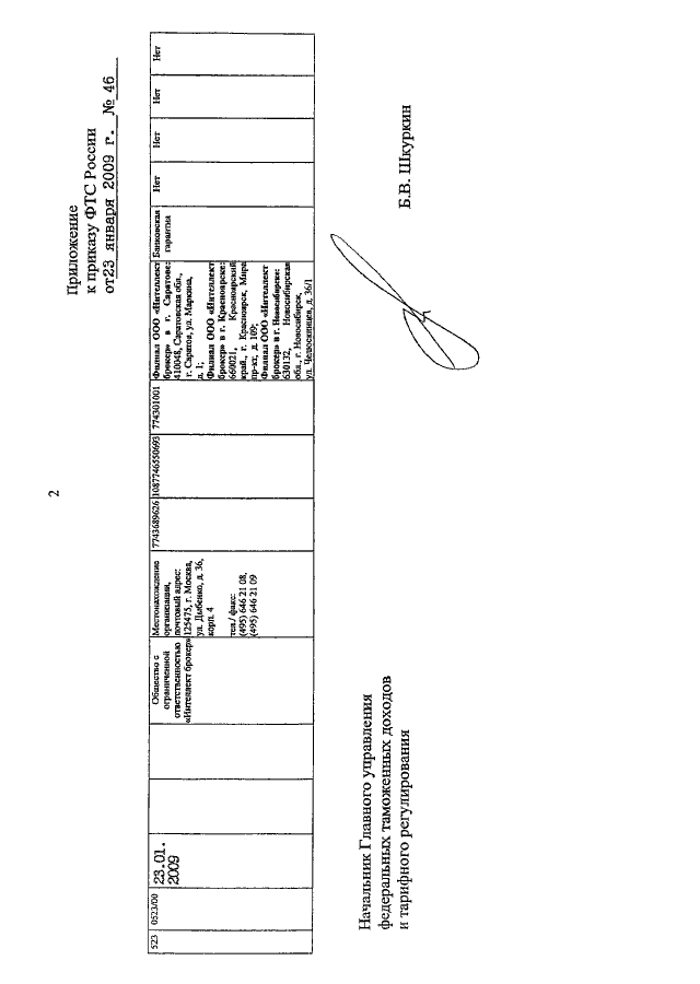 ПРИКАЗ ФТС РФ от 23.01.2009 N 46