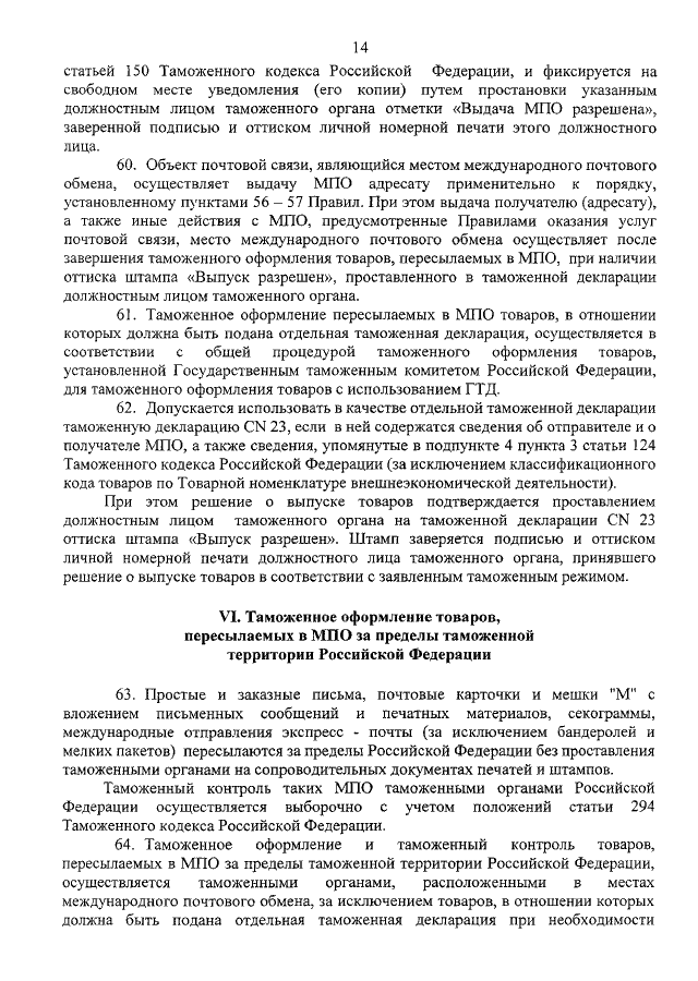 "ОБ УТВЕРЖДЕНИИ ПРАВИЛ ТАМОЖЕННОГО ОФОРМЛЕНИЯ И ТАМОЖЕННОГО КОНТРОЛЯ ТОВАРОВ, ПЕРЕСЫЛАЕМЫХ ЧЕРЕЗ ТАМОЖЕННУЮ ГРАНИЦУ РОССИЙСКОЙ ФЕДЕРАЦИИ В МЕЖДУНАРОДНЫХ ПОЧТОВЫХ ОТПРАВЛЕНИЯХ"
