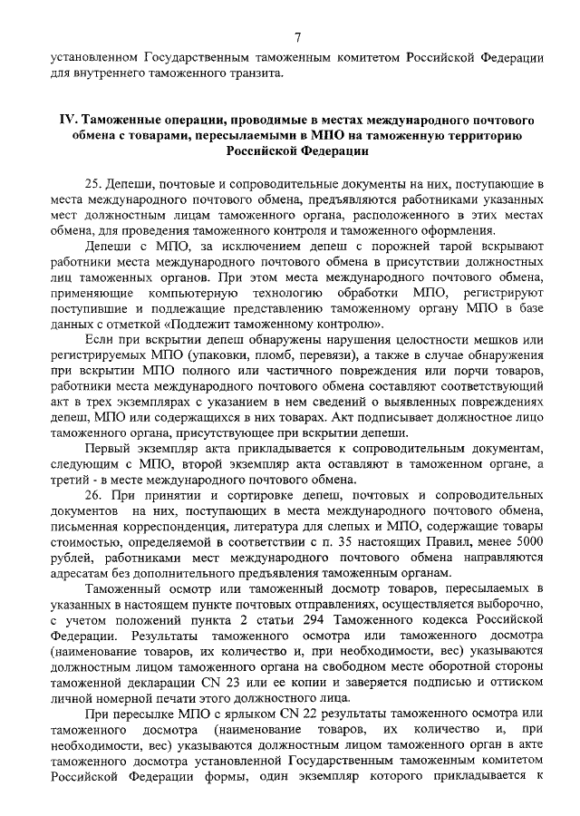 "ОБ УТВЕРЖДЕНИИ ПРАВИЛ ТАМОЖЕННОГО ОФОРМЛЕНИЯ И ТАМОЖЕННОГО КОНТРОЛЯ ТОВАРОВ, ПЕРЕСЫЛАЕМЫХ ЧЕРЕЗ ТАМОЖЕННУЮ ГРАНИЦУ РОССИЙСКОЙ ФЕДЕРАЦИИ В МЕЖДУНАРОДНЫХ ПОЧТОВЫХ ОТПРАВЛЕНИЯХ"
